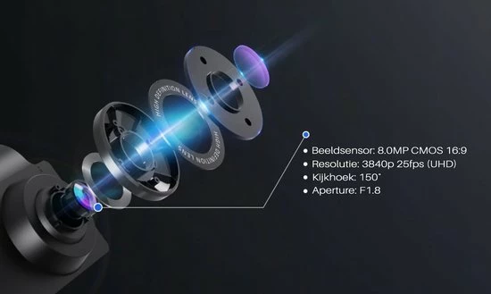 De M63 Pro 64gb is uitgerust met de nieuwste 8.0MP beeldsensor die garant staat voor de scherpste Ultra 4K video’s. Hij filmt met een resolutie van 3840p*2160p in 25fps, maar je kunt hem ook op FullHD 60fps laten opnemen. De HDR technologie staat garant voor een perfecte beeldkwaliteit bij alle weersomstandigheden. Tevens kan met de dashcam foto’s in 18M pixels worden gemaakt.