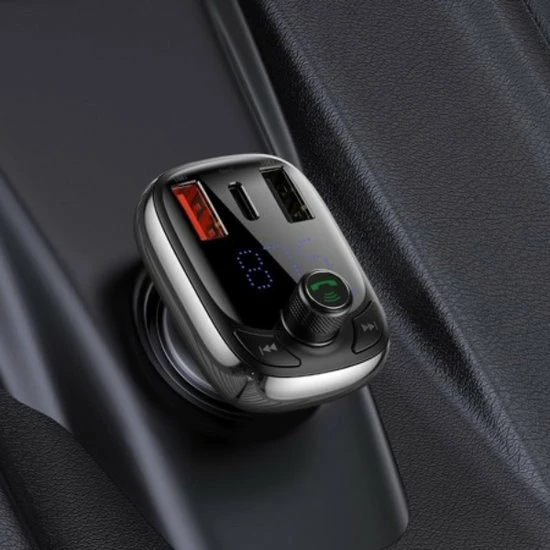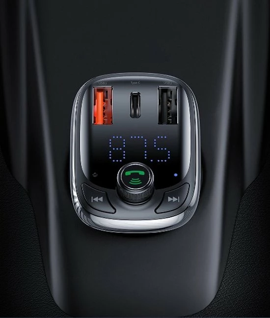 De multifunctionele Baseus-oplader heeft een FM-zender en ondersteunt Bluetooth 5.0, waardoor je hem kunt koppelen met je smartphone, muziek kunt afspelen en inkomende oproepen kunt ontvangen. Met de snellaadtechnologie laad je je smartphone of ander apparaat nog sneller op. Het heeft twee USB-ingangen, waaronder een met QC 3.0 snellaadoptie en bovendien USB Type-C die QC 4.0- en PD-technologieรซn ondersteunt.