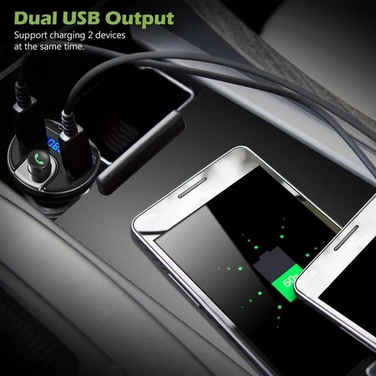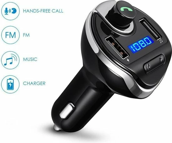 BT Carkit Bluetooth Carkit FM Transmitter Om Handsfree Te Bellen En Draadloos Muziek Te Streamen, Met Volumeknop En Oplaadfunctie Voor 2 Telefoons Tegelijkertijd | Display | Handsfree Bellen | USB Oplader | MP3 Speler Aux | TF-Kaart | Lovnix Carkit T20