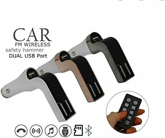 Support USB charger, Fm transmitter, bluetooth, SD card, Handsfree, safety hammer