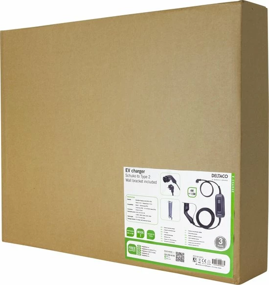 Deze oplaadkabel voor elektrische auto’s van DELTACO e-Charge past op alle voertuigen met een Type 2 aansluiting. Kan perfect dienen als noodlader op plekken waar geen wallbox of laadpaal ter beschikking staat, dankzij de Schucko aansluiting aan de andere zijde.Laadvermogen tot 3,6 kW. De laadstroom is instelbaar tussen 6, 8, 10, 15 of 16A. De oplaadtijd kan worden beperkt in tijd tussen 1 en 12 uur, en de starttijd kan ook worden uitgesteld tussen 1 en 12 uur. Informatie over ingestelde laadstroom en eventuele timerfuncties worden op het display weergegeven. Het display toont de huidige status en hoeveel stroom er is opgeladen tijdens het opladen. De LED-indicatie toont groen of rood aan de voorzijde om eenvoudig de laadstatus te zien.De oplader wordt geleverd met een muurbeugel voor eenvoudige installatie en de mogelijkheid tot vergrendeling met behulp van een hangslot *.* Hangslot niet inbegrepen.De verzilverde verbindingen garanderen een goed contact en een lange levensduur. De Type2 connector2 is voorzien van stofbescherming ter bescherming tegen stof, vuil en vocht tijdens opslag. De kabelbedieningskast heeft een ingebouwde aardlekschakelaar type A en een 6mA DC-filter.De kabel is gemaakt van een TPE-materiaal dat goed bestand is tegen olie, slijtage en UV-licht. De kabel is ook flexibel in koeling. Type 2 stopcontacten zijn tegenwoordig EU-standaard, auto’s van de fabrikanten bijvoorbeeld. AUDI, BMW, Hyundai, KIA, Mercedes, Polestar, Porsche, Seat, Skoda, Tesla, Volkswagen, Volvo gebruiken allemaal Type 2-stopcontacten.Het opladen van de auto wordt bewaakt via een tweewegcommunicatie tussen de auto en de bedieningskast. Wanneer de kabel is aangesloten op de auto, wordt er een zelftest uitgevoerd die ervoor zorgt dat de kabel correct is aangesloten en dat de auto klaar is om stroom te krijgen, voordat het opladen begint en de schakelkast de kabel van stroom voorziet, wordt de connector mechanisch vergrendeld de auto. De beschermingsklasse is conform IP54. De kabelbedieningskast heeft een ingebouwde aardlekschakelaar en DC-filter. Bij een aardlek wordt de lading uitgeschakeld.Ontgrendel de auto na het opladen zodat het mechanische slot opent en koppel de connector van de laadkabel los.Het Zweedse bureau voor elektrische veiligheid in Zweden, DSB in Noorwegen, Tukes in Finland en de Zweedse veiligheidsraad in Denemarken raden allemaal af om regelmatig op te laden in gewone stopcontacten voor wand- en motorverwarming. LET OP er zijn enkele lokale afwijkingen.Kenmerken:- Laadvermogen tot 3,6 kW- Classificatie: IP54- LED-indicator- Batterijstatusweergave- Vochtbestendig, stofkappen, stofafstotend en vuilafstotend’