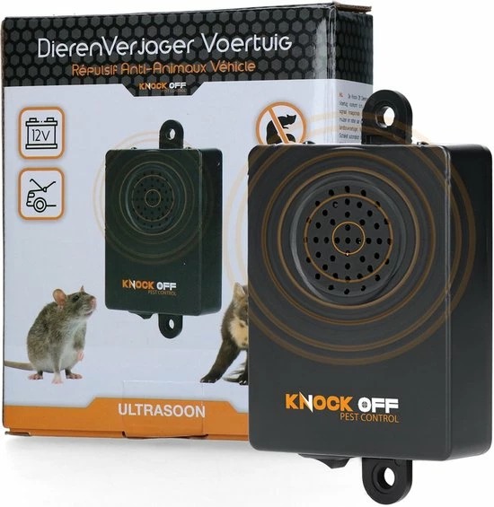De dierenverjager voor voertuigen waarmee u voorkomt dat ratten, muizen en marters gaan knagen aan uw auto, motor of langbouwvoertuigen. Dit product verjaagt ongedierte door middel van ultrasoon signaal. Daarnaast schakelt deze verjager automatisch in en uit wanneer beweging van het voertuig wordt waargenomen. Het apparaat werkt op 12V.