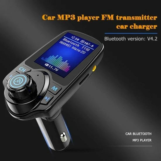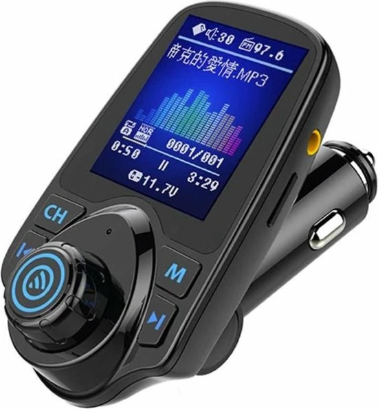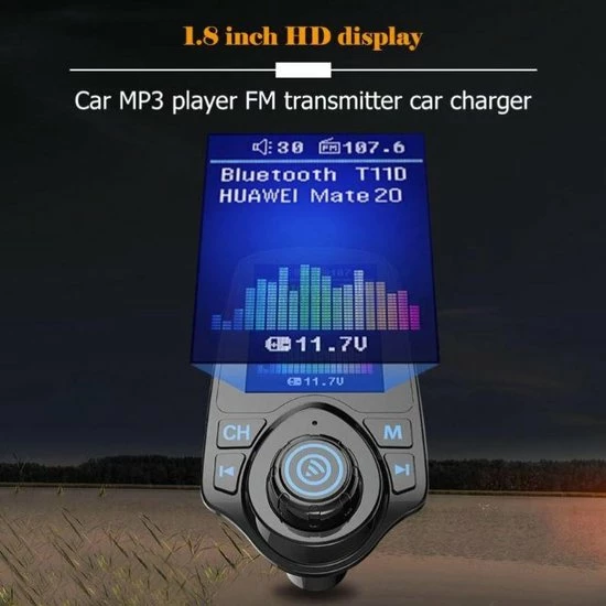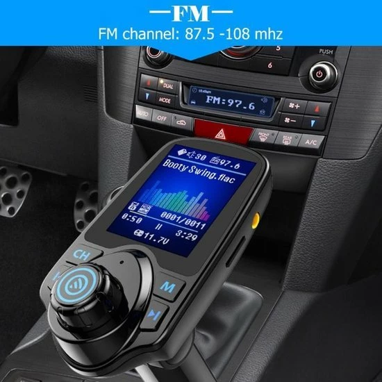 Speciaal ontwerp – Verbazingwekkend 1.44 ” LED-display kan de huidige spanning van de accu van uw auto weergeven, ook de naam van nummers die worden afgespeeld vanaf TF Cards of telefoonnummer bij inkomende oproepen, en FM-kanaal en volume