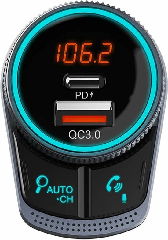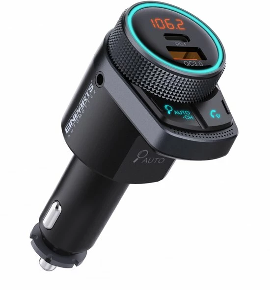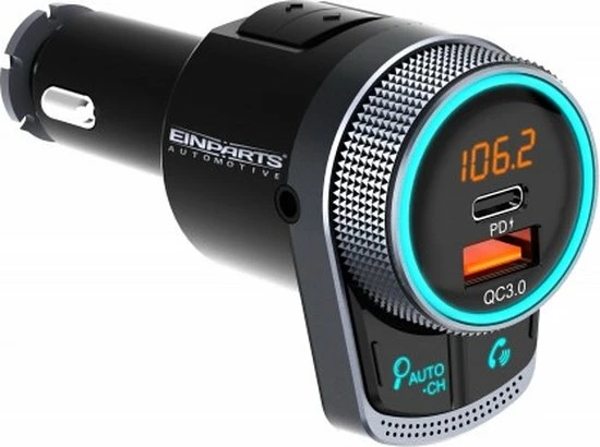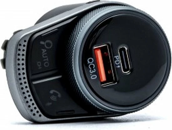 EPBTT01 is een geweldige combinatie van een Bluetooth-speakerphone met een FM-zender en snelle PD- en QC-opladers.