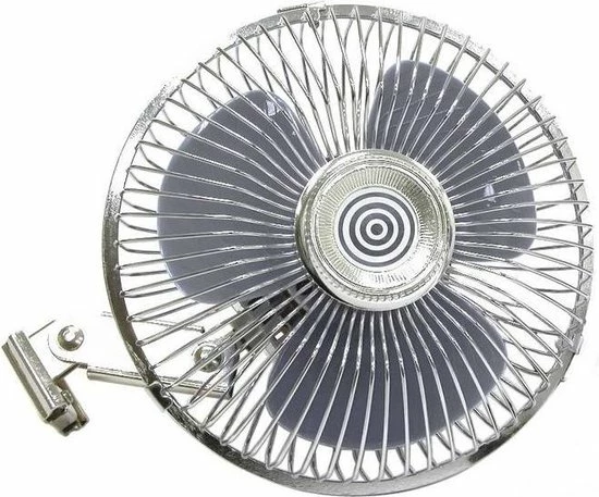 Zorg voor frisse lucht in je auto met deze ventilator. De ventilator heeft een metalen beschermrooster en een schakelbare draaivleugel automaat. Een verbindingskabel voor de 12V voertuigstroomaansluiting is inbegrepen.