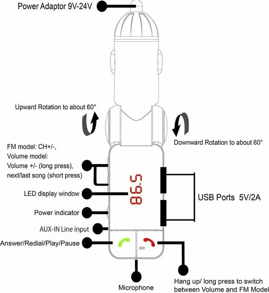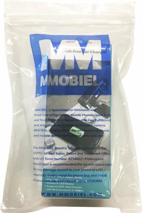 | Verpakkingsinhoud | Bluetooth, FM, Radio, Transmitter, met, twee, USB, oplaadpoorten |
