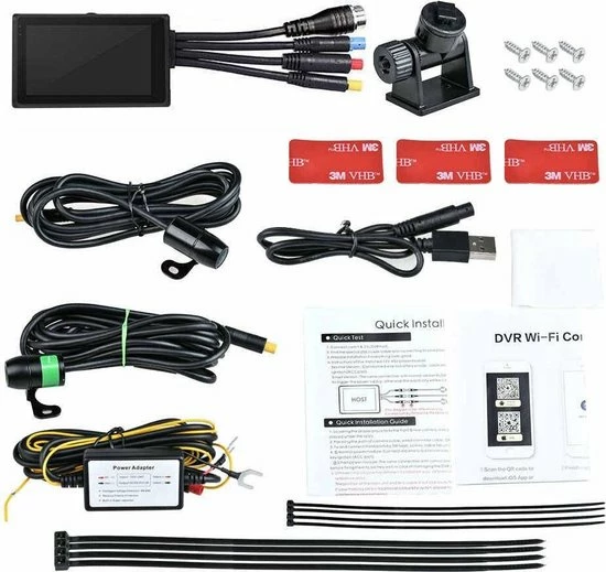 De Motocam E7 Wifi Vsysto wordt geleverd met alle benodigde accessoires om de dashcam onopvallend en uit het zicht te kunnen monteren. De camera’s zijn zeer compact en worden geleverd met 2,5 meter lange kabel zodat de dashcam op elke motor kan worden gemonteerd.