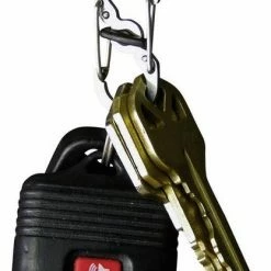 Perfect voor sleutels of andere belangrijke kleine onderdelen. In het midden van de dubbele karabijnhaak van hoogwaardig roestvrij staal zit een kleine hendel van stootvaste kunststof, die met een simpele draai beide karabijnhaakopeningen veilig sluit en zo ongewenst openen voorkomt. Als er opnieuw wordt gedraaid, gaat deze weer open. Ideaal voor het veilig aanbrengen van hondenpenningen, pasjes, sleutels enz.