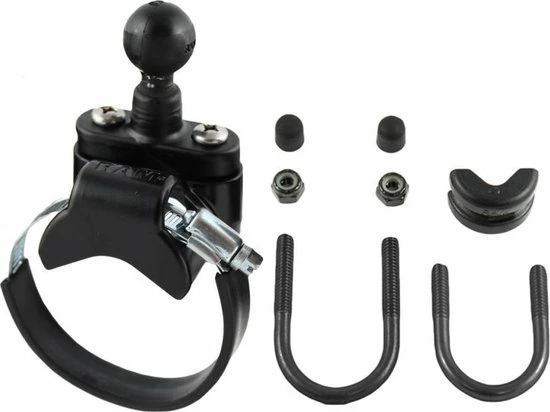 B-Kogel op kunststof stuuradapter met spanband en U-beugel. Inclusief beschermend materiaal. Geschikt voor B-klemmen voor montage op alle RAM systemen.