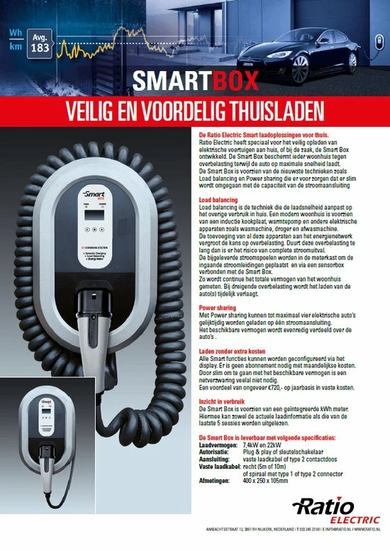 Ratio EV Smart Box 1F32A 7,4kW Type 2 Kabel 10 meter.