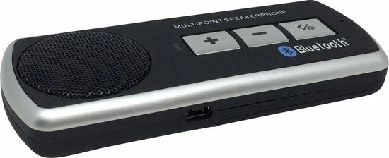 Bellen achter het stuur met uw smartphone is gevaarlijk – en duur als u door de politie wordt betrapt. Met de Renkforce Bluetooth 4.1 handsfree carkit kunt u uw auto heel eenvoudig upgraden met een handsfree carkit. Perfecte geluidskwaliteit Verbind het handsfree-systeem draadloos met uw smartphone dankzij Bluetooth 5.0. De full-duplex geluidskwaliteit, die achtergrondgeluiden en echo’s uitfiltert, maakt kristalheldere gesprekken mogelijk. One-touch bediening Om tijdens het rijden snel op gesprekken te kunnen reageren, heeft het handsfree-systeem aan de voorkant drie One-touch-toetsen: – Volume verhogen of verlagen met de beide volume-toetsen – Multifunctionele toets voor het aannemen en weigeren van gesprekken of om nummerherhaling te activeren Bovendien beschikt het Renkforce Bluetooth handsfree-systeem aan de bovenkant van het apparaat over een mute-toets. Eenvoudig te monteren op de zonneklep Het Bluetooth handsfree-systeem is heel eenvoudig te bevestigen aan de zonneklep van de auto dankzij metalen clips. Zo zit de carkit op de juiste hoogte van de spreker, maar stoort hij niet tijdens het autorijden. Sterke accu Dankzij de krachtige 750 mAh accu kunt u tot 7,5 uur gesprekken voeren. Het opladen vindt gewoon via de sigarettenaansteker in de auto plaats.