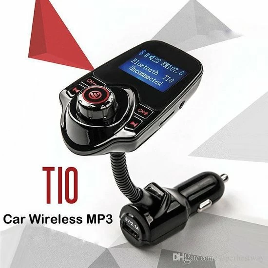 T10 Auto draadloze MP3 FM-zender LCD-scherm Bluetooth V3.0 + EDR Handsfree-kit Ondersteuning U Disk FLAC TF-kaart – zwart.