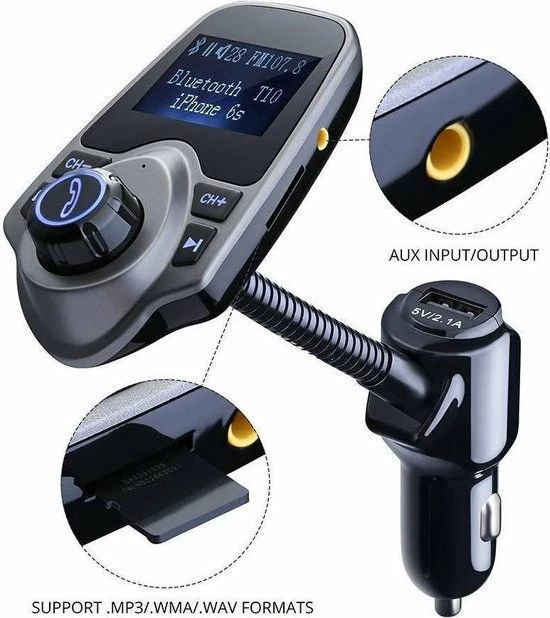 Speciaal ontwerp: verbluffend LED-display kan de huidige spanning van de accu van uw auto ongeveer 5 seconden weergeven wanneer de FM-zender is ingeschakeld, ook de naam van nummers die worden afgespeeld vanaf TF-kaarten of telefoonnummer bij inkomende cal
