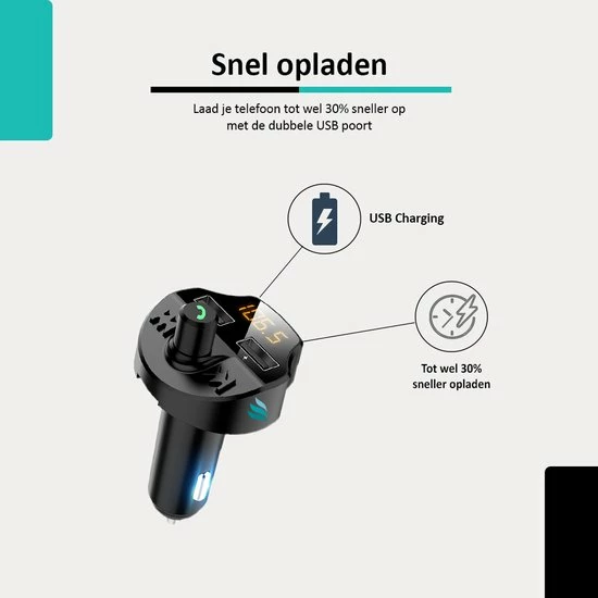 Autorijden is nog nooit zo comfortabel geweest met deze bluetooth transmitter! Verbind je telefoon gemakkelijk met de transmitter in de auto en geniet tijdens het autorijden van draadloos muziek streamen, handsfree bellen en stem navigatie. Daarnaast is de transmitter voorzien van twee fast charge USB-aansluitingen. Hiermee kan je maar liefst twee telefoons of andere toestellen tegelijk opladen tijdens het autorijden. Zo kom je nooit meer met een lege accu van je telefoon of ander toestel aan op je eindbestemming!