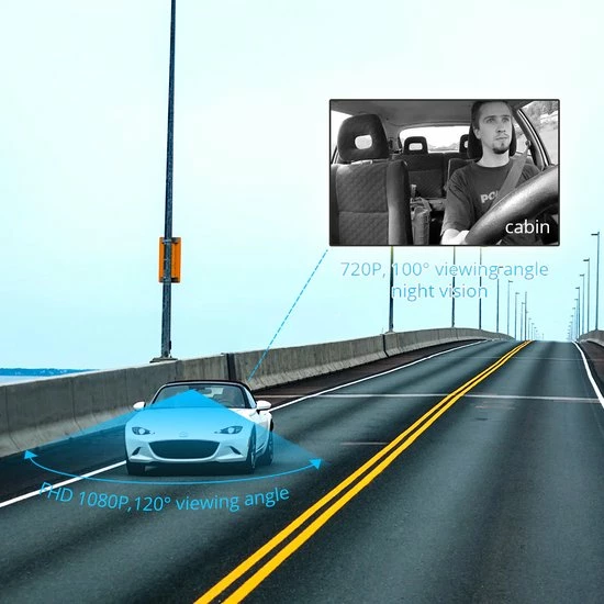 Smart Auto Dash Cam is gemaakt van hittebestendig matenals en gebruikt om weerstaan diverse surveillance omstandigheden. de 6-layer alle-glazen lenzen zorgt voor hoge resolutie beelden met uitstekende kleurbalans voor dag en nacht zorg. Deze Auto DVR heeft twee camera’s waarmee voor gelijktijdig opname video’s van twee verschillende hoeken.