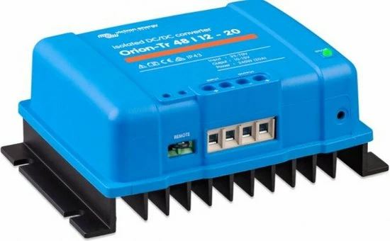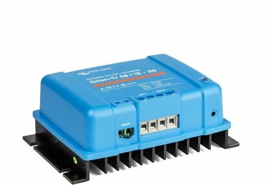 De Victron Orion-Tr 48/12-20A is een DC-DC omvormer en een omvormer en acculader in één. De 48V omvormer kan aan- en uitgeschakeld worden op afstand en is beschermd tegen storing.