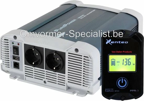 Bovendien ontvangt u bij deze omvormer eveneens een afstandsbediening met functie-display. Op dit display worden afwisselend de batterijspanning en het opgenomen vermogen weergegeven.